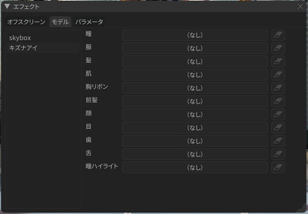 モデルの材質単位に割り当てるエフェクトの設定を変えることができます。